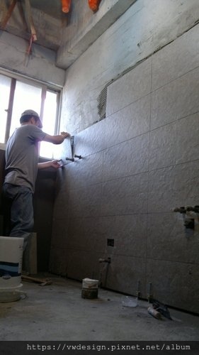 就要開始進行貼磁磚的工作